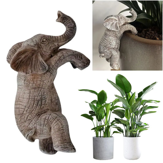 Cute Climbing Elephant Figurines Resin Cute Elephant Ornaments Creative Elephant Planter Pot Decor for Balcony Patio Lawn Yard