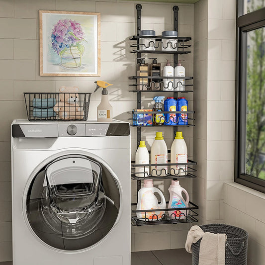 Over The Door Pantry Organizer, Metal Multi-Layer Wall Mounted Behind Door Hanging Storage Organizer Shelf for Kitchen Bathroom